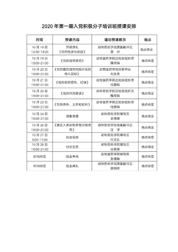 为保证大学生党员发展质量,做好学生入党积极分子的培训工作,我院党委定于近期举办2020年第一期入党积极分子培训班。现将有关事宜通知如下: