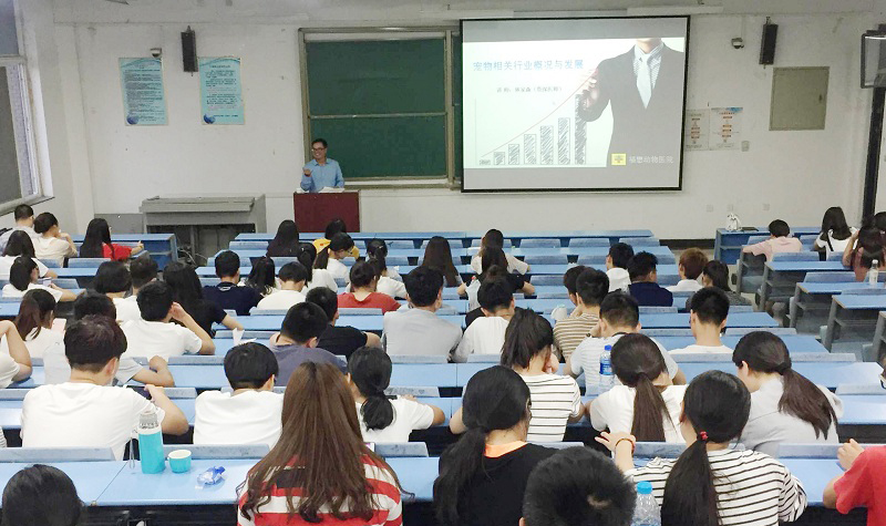 为促使我院学生熟悉行业发展,增强对岗位的适应能力,2017年5月17日动物医学院特邀广州福一懋动物诊疗有限公司市场部总监——林家森,为同学们作《宠物行业发展趋势》主题讲座,当晚来自我院15级和16级宠物专业四个班的学生共同听取了本次讲座。