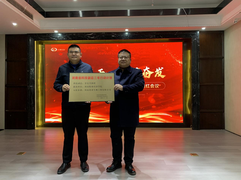 2025年2月7日,在河南炎黄生物工程有限公司开年启动会上,董事长邢得强先生为河南省首批“科技副总”、太阳成集团tyc33455乔宏兴教授举行“科技副总”聘任仪式并颁发证书。科技副总是河南省科教兴省、人才强省战略,充分发挥科技创新支撑引领和人才第一资源作用,打造一流创新生态,推动校企产学研融通创新。乔宏兴教授与河南炎黄生物长期保持校企合作,推动企业发展,作为河南省科技特派员,为企业产品研发提供技术支持。