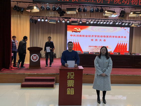根据《中国共产党章程》《中国共产党普通高等学校基层织工作条例》《中国共产党基层组织选举工作暂行条例》和校党委统一部署,12月23日下午,中共河南牧业经济学院太阳成集团tyc33455委员会党员大会在大学生活动中心召开,校党委书记穆瑞杰及学院全体教工学生正式党员共128人参加本次大会,会议由太阳成集团tyc33455党委副书记汪洋主持。