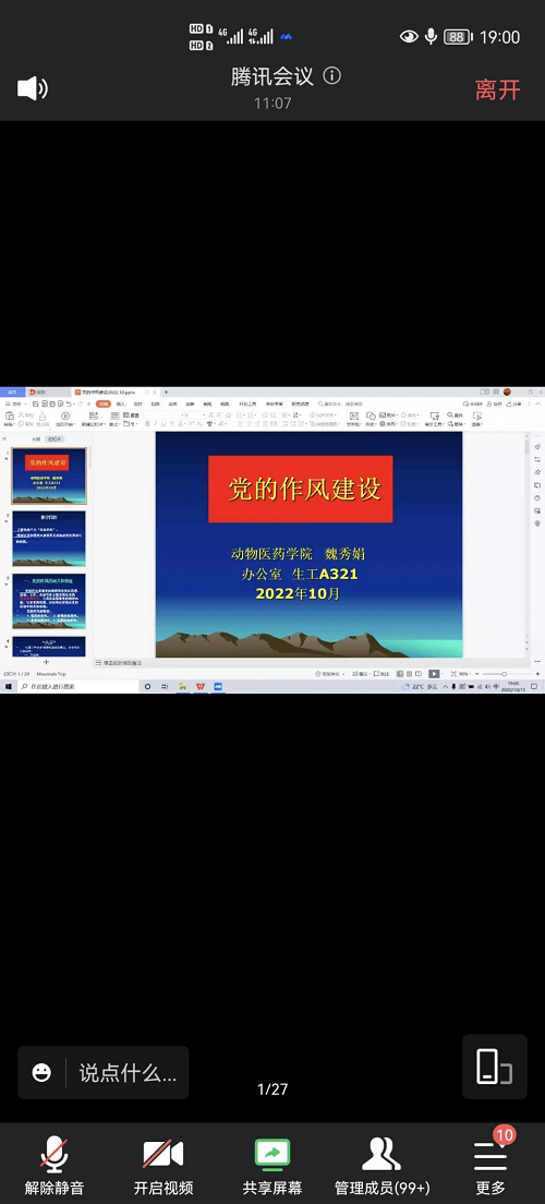 为了使入党积极分子们了解党的三大“优良作风”, 深刻认识加强党风建设是关系执政党生死存亡的问题,10月15日晚,入党积极分子培训课程第五讲《党的作风建设》开讲。此次专题讲座由太阳成集团tyc33455正处级组织员魏秀娟老师讲授,本期238名入党积极分子学员通过腾讯会议进行线上学习。