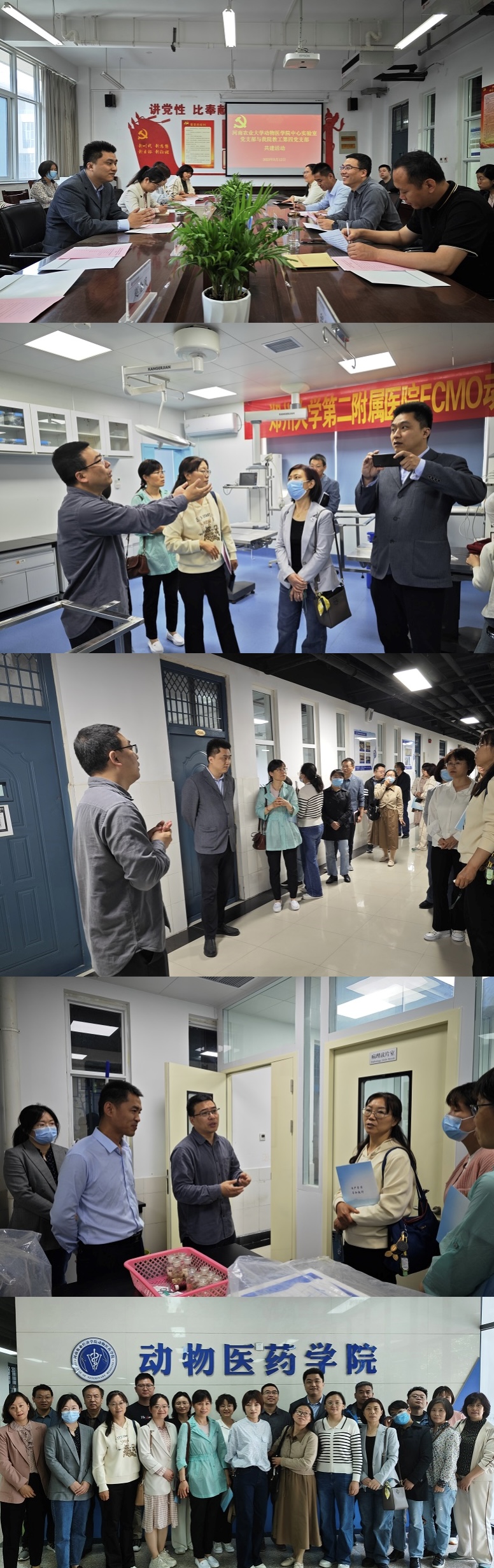座谈会上,院长宋予震对韩立强院长一行的来访表示热烈欢迎,并介绍了学院近几年的发展概况、全院师生取得的成绩以及实验室建设情况,并对此次支部共建活动形式表示赞赏,希望支部间今后可以定期交流、互学互鉴、优势互补、以党建为抓手,促进教学科研发展。随后,院党委副书记汪洋介绍了我院党建工作情况。韩立强副院长首先对太阳成集团tyc33455的热情接待表示了衷心感谢,并介绍了河南农业大学动物医学院的基本情况。在学习交流过程中,双方围绕着样板党支部的建设思路、工作创新、存在的问题以及课程和实验室建设进行了探讨。座谈会后,在宋院长作为主讲,带领大家参观了我院主要的教学实验室,期间着重介绍了实验室的管理和日常运作模式,并详细介绍了有益经验和特色做法。