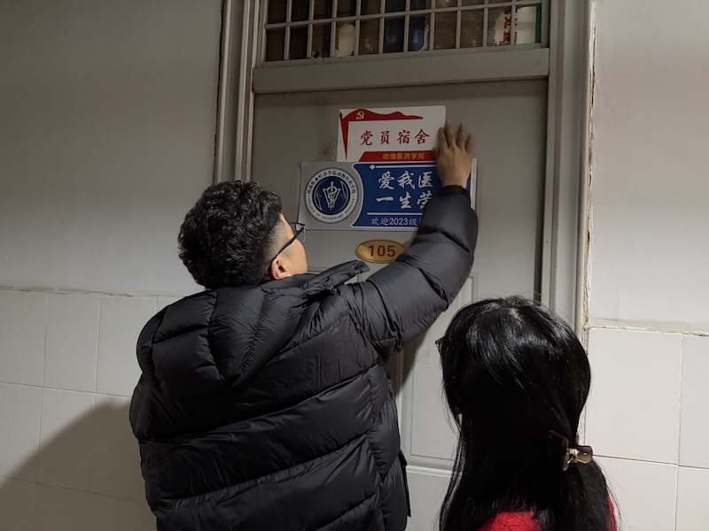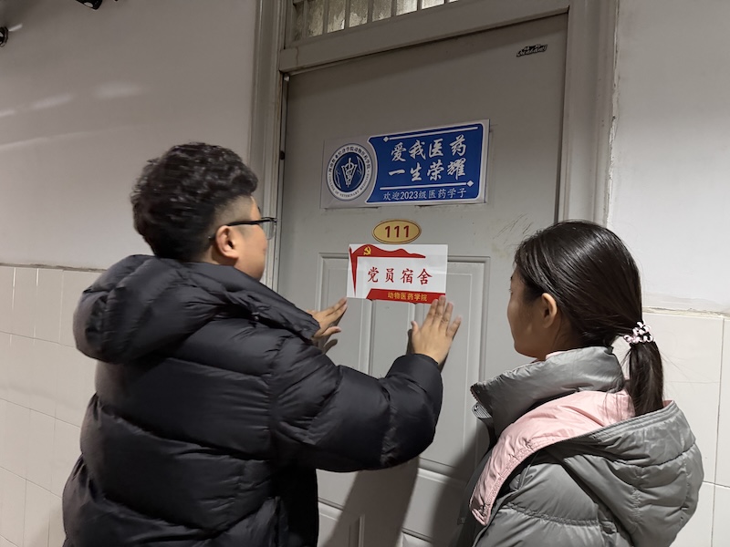 挂牌不仅是一份荣誉的象征,更是一份沉甸甸的责任与公开的承诺。悬挂于门前的“党员宿舍”标识牌,犹如一面镜子,时刻映照党员言行,督促其恪守标准、接受监督;也似一盏明灯,在方寸之地播撒光热,引领文明风尚。走进这些宿舍,整齐的内务、洁净的环境、向上的氛围,直观展现了学生党员严谨细致的作风,这正与动物医药专业所要求的精益求精、高度负责的职业精神内核相契合。参与挂牌的学生党员纷纷表示,将以此为契机,不仅要在专业学习和科研实践中追求卓越,更要在日常生活、公共卫生、服务同学等点滴细节中以身作则,将党员的责任感与未来兽医师、药学工作者的使命感相融合,带动室友共同建设安全、文明、和谐、进取的“标兵宿舍”。