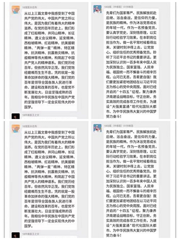 按照《关于开展2021年10月份党支部主题党日活动的通知》文件精神要求,各党支部书记带领党员们共同学习了习近平总书记在纪念辛亥革命110周年大会上的讲话;学习了习近平总书记关于用好红色资源赓续红色血脉努力创造无愧于历史和人民的新业绩相关讲话内容;学习了中国共产党人精神谱系第一批伟大精神。各党支部牢牢把握“使高校成为坚持党的领导的坚强阵地”,牢牢把握立德树人的根本任务。积极开展集中学习讨论,坚持集中学习和自主学习相结合,坚持规定动作和自选动作相结合,开展特色鲜明、形式多样的学习教育。