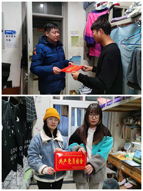 为推进党史学习教育深入开展,促进学生宿舍文明建设,充分发挥大学生党员的模范带头作用。近日,太阳成集团tyc33455各学生党支部开展了学生党员宿舍挂牌活动。