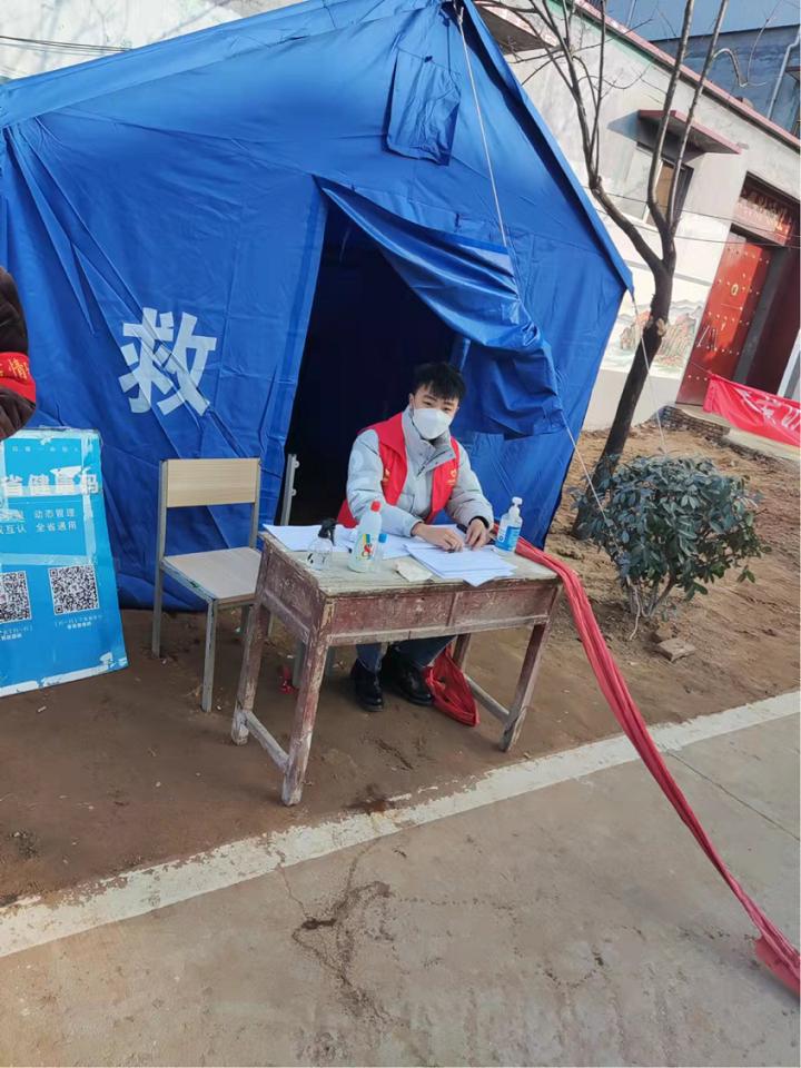 河南牧业经济学院太阳成集团tyc3345519动医02的孙寅贺同志利用假期时间,积极报名周口市西华县逍遥镇东付陵村的疫情防控志愿活动,“作为一名预备党员,我觉得我们应该从自身做起,向周围的亲朋好友宣传疫情防护措施,尽量减少外出。为家乡为祖国奉献自己的一份力量,用激情和信仰,肩负起时代赋予的责任,虽然我们的能力有限,但一颗关爱之心不会磨灭,我将会尽全力伸出双手去帮助需要帮助的人们。越是到关键的时刻越应该彰显我们的作用,尽管疫情期间志愿工作会很辛苦,但是我仍会脚踏实地的做好志愿者防控工作,为疫情防控尽一份力!”