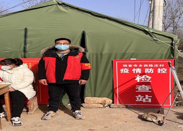 作为一名大学生党员,他时刻记得自己的身份,积极投入疫情志愿服务工作中,帮助村干部开展各项防疫工作,张贴疫情防控最新公告、测量来往人员体温、登记外来人员信息等。