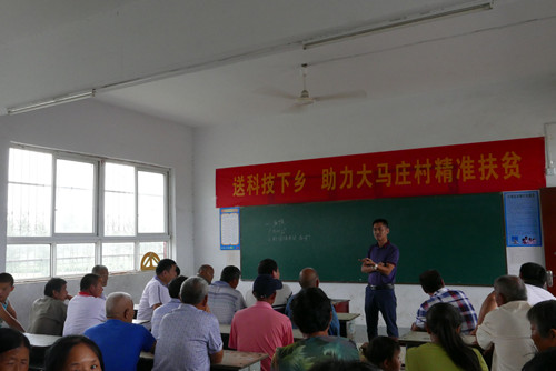 ,动物医学院党总支组织党员教师、畜禽疾病防治专家王岩和吴玉臣两位老师赴学校驻村第一书记王清龙同志任职的驻马店市新蔡县孙召镇大马庄村开展送科技下乡活动,把最新的实用养殖技术和科技知识送到了农村畜牧业生产一线,取得了良好的效果。