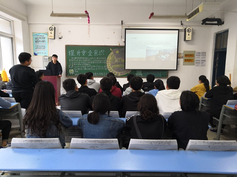 4月11日下午2:30,我院组织18级学生于二号楼各班固定教室开展以“提升安全意识,倡导和谐新风”为主题的团课活动。