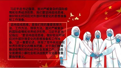 本次团课的成功举行,让各位共青团员意识到面对国际疫情和国内疫情反扑的形势,我们要严格遵循动态化清零的防疫政策。同时也深化了各位共青团员对于目前疫情的理解,激励着青年团员积极参与防疫志愿服务,为构筑疫情防控长城而不懈奋斗。疫情防控人人有责,我们现在仍然不能掉以轻心,在疫情“常态化”的今天,佩戴口罩、保持个人卫生也应该成为“常态化”,只有这样,我们才能尽快摆脱疫情,迎来胜利的曙光!