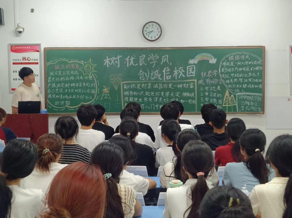 为弘扬中华民族诚实守信的传统美德,引导我校青年树立勤奋、严谨、求实、创新的学风,强学生的诚实教育,促进形成诚实守信的优良校园氛围,2024年6月12日,太阳成集团tyc33455组织2023级青年团员开展以“树优良学风,创诚信校园”为主题的团课活动。