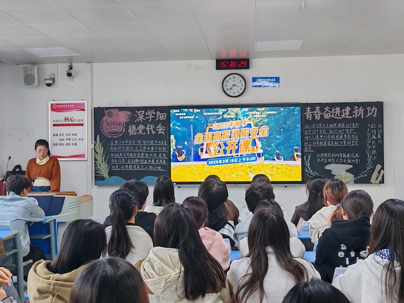 团课伊始,团支书以“青年之声”发布的党代会相关内容为指引,带领团员青年聚焦学校二次党代会工作报告,从了解学校在党的建设、人才培养、教育教学、科技创新、社会服务、开放办学等方面取得显著成绩,明确学校的战略目标,到剖析未来在学科建设、社会服务等面临的挑战与规划,大家原原本本研读,逐字逐句领会。在交流分享环节,大家踊跃发言,同时结合专业学习,深入探讨报告要点,力求融会贯通。最后,团支书号召大家以此次学习为契机,将党代会精神融入专业学习与实践,在服务社会中锤炼本领,以青春担当助力学校“十四五”规划目标实现。活动尾声,全体成员集体观看了消防安全公开课,通过真实案例强化安全意识,团支书强调“安全是发展的基石”,号召青年学子在奋进新征程中筑牢安全防线,为平安校园建设贡献青春力量。