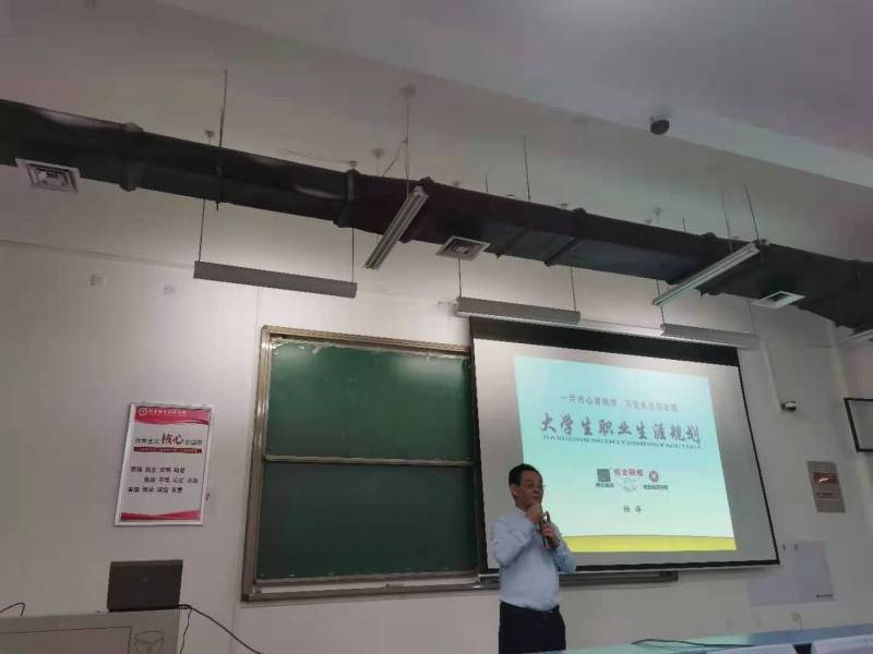为提高太阳成集团tyc33455学生对专业的认知度和就业形势的了解,使同学们了解到职业规划的重要性。太阳成集团tyc33455邀请到美兰集团副总裁杨译先生于5月14日下午2:30在合202为我院学生进行职业规划指导,我院团委副书记樊明明老师、辅导员康宇、闫一博老师以及在校毕业生参加了此次讲座。